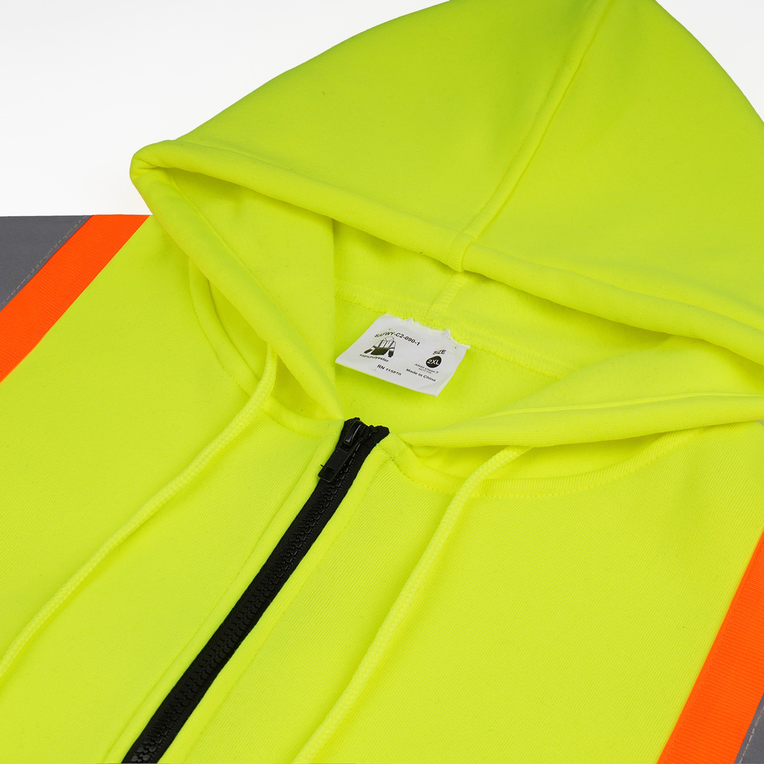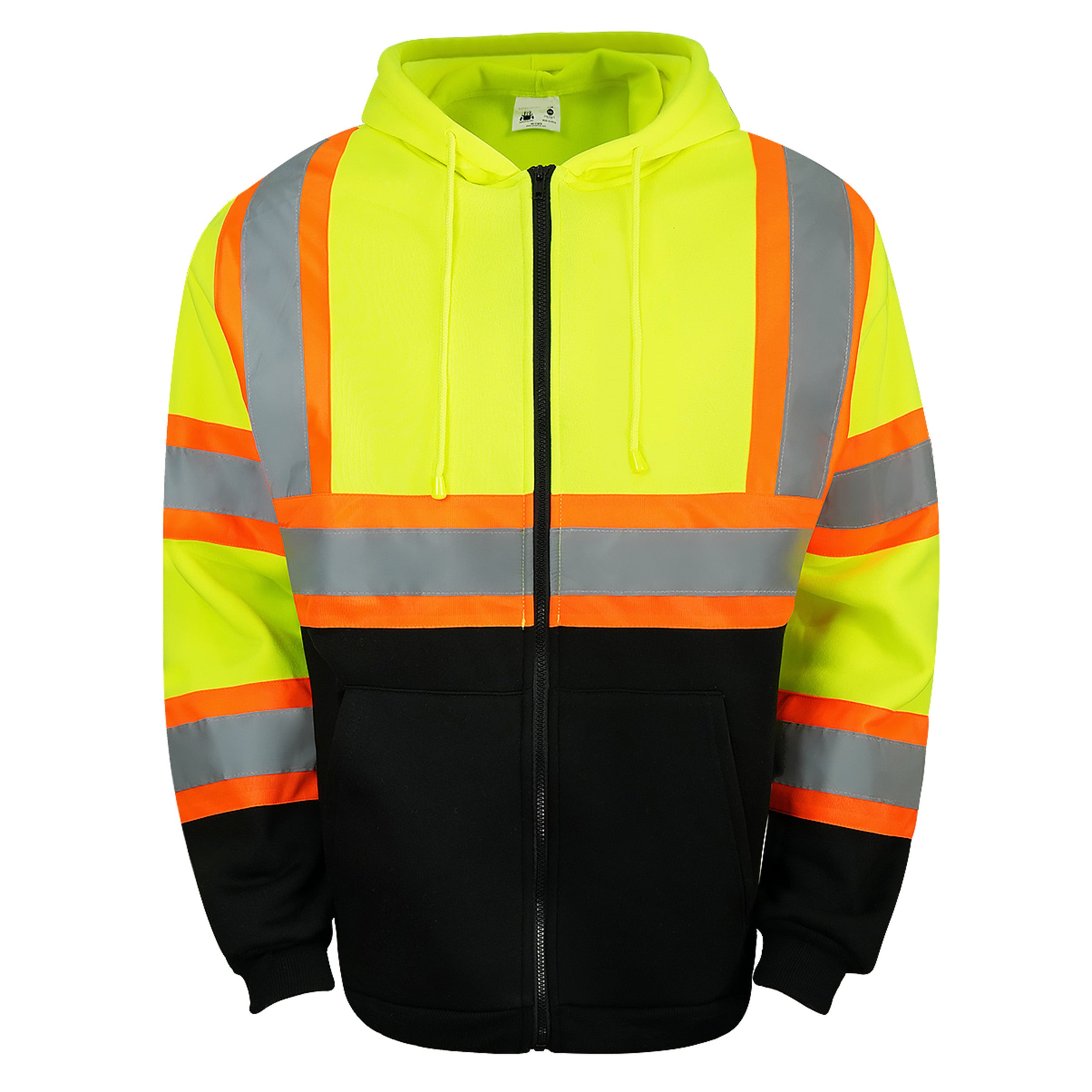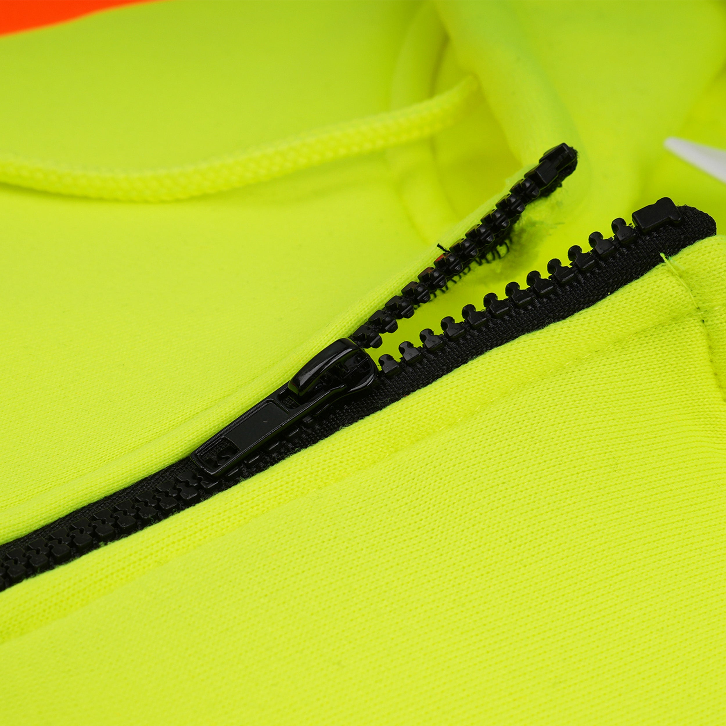Stay stylish, visible, and comfortable with the Color Block Zip-Up Hoodie. Made from 100% durable polyester, this hoodie features a bold color-block design for a modern look. Reflective stripes provide enhanced visibility in low-light conditions, while the full-zip front, adjustable hood, and convenient front pockets add versatility and ease of wear. Ideal for layering, workwear, or casual outings, it’s the perfect blend of function and style.