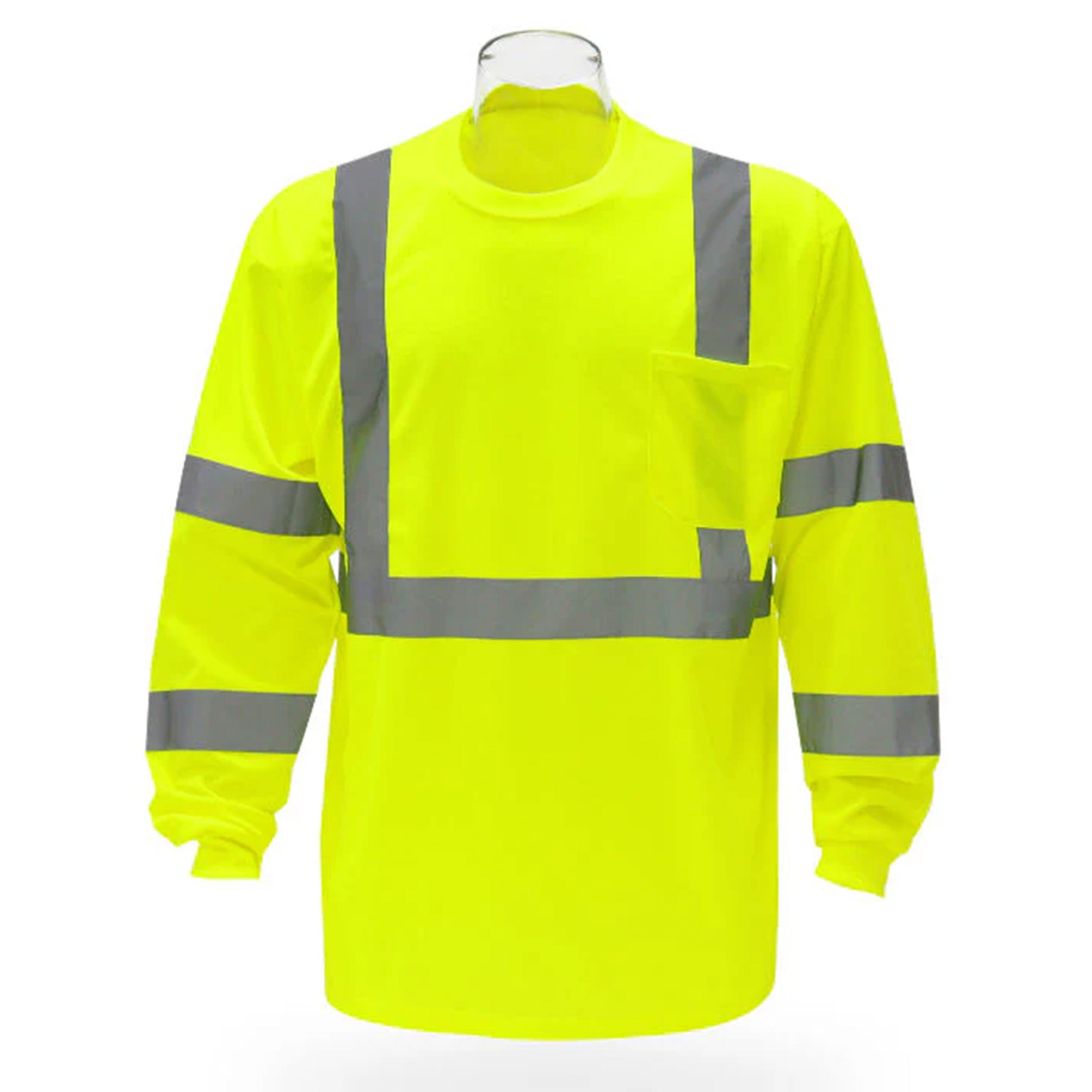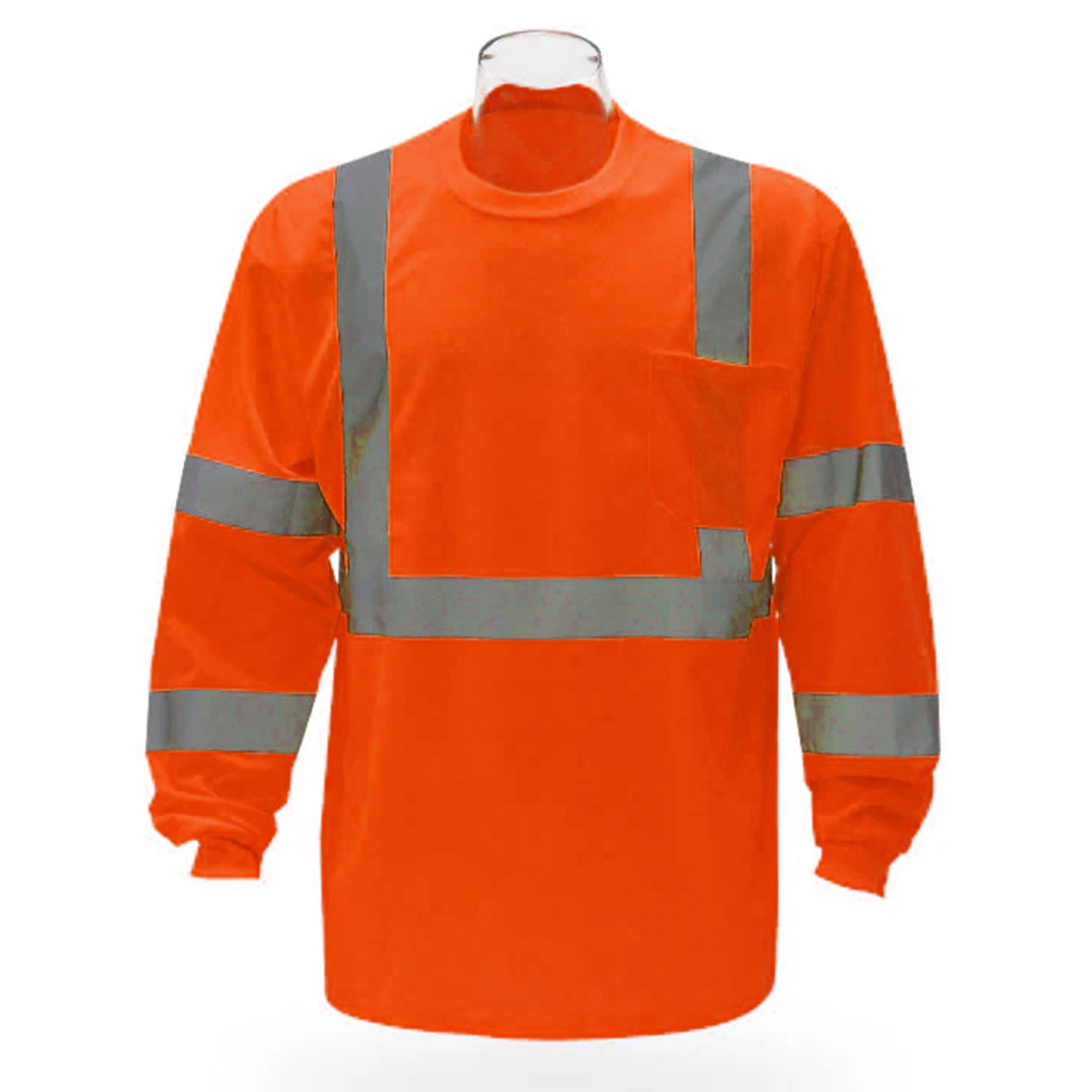 High Visibility Safety Long Sleeve T-Shirt – Reflective Workwear with Front Pocket